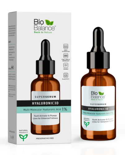 يتميز سيروم الهيالورونيك متعدد الجزيئات من بيو بالانس بثلاثة أوزان مختلفة من جزيئات حمض الهيالورونيك، مما يسمح له باختراق طبقات متعددة من الجلد للحصول على ترطيب متعدد الأعماق. يجدد رطوبة البشرة بين جميع طبقات الجلد يقلل من ظهور الخطوط الدقيقة والتجاعيد يحسن نسيج الجلد ومرونته وليونته.