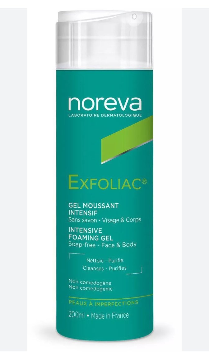 غسول تنظيف البشرة الدهنية والمعرضة لحب الشباب نوريفا اكسفولياك جل 200مل عبارة عن جل رغوي مكثف يومي